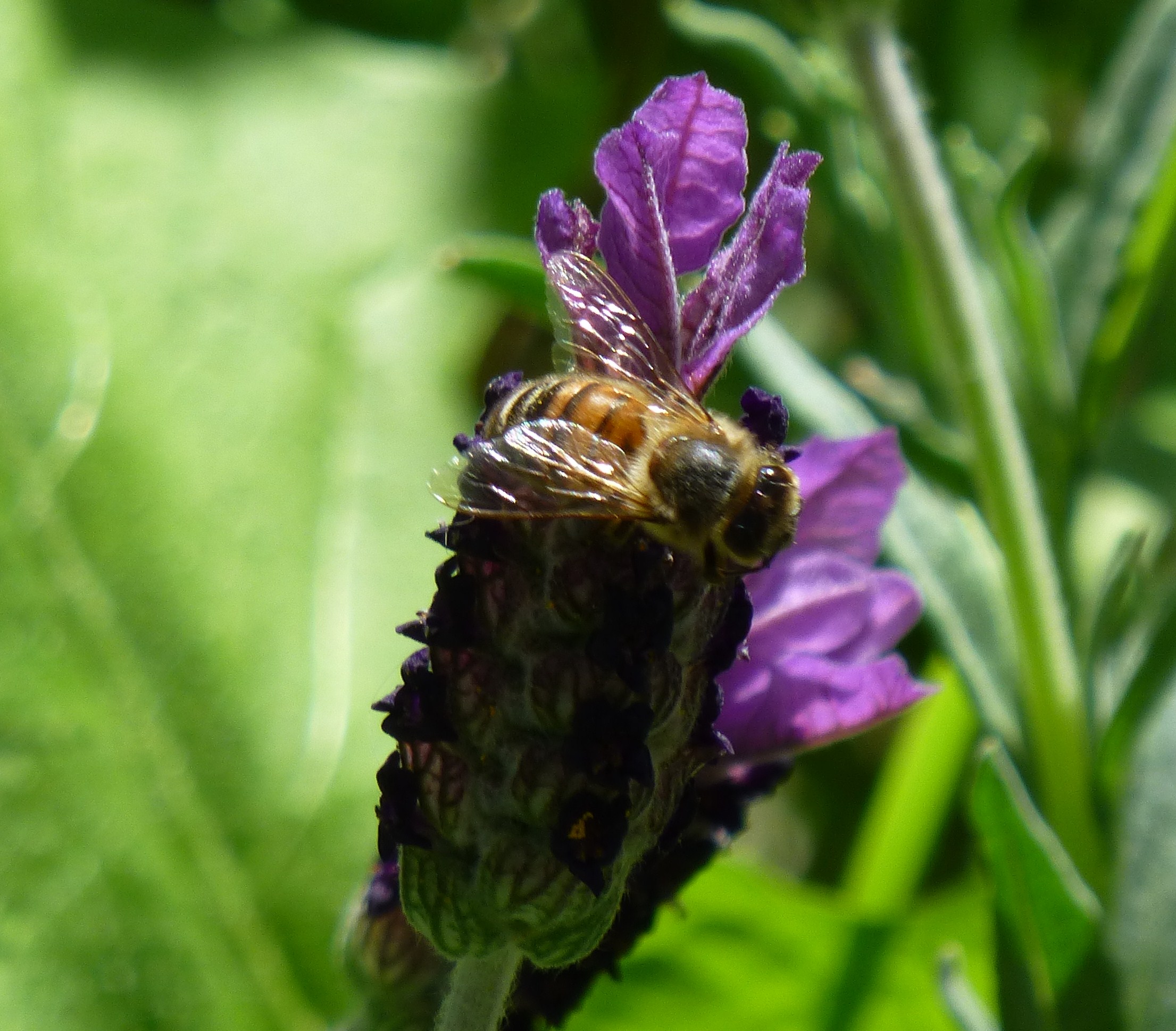 Bee busy on butterfly lavender: they love regular lavender too